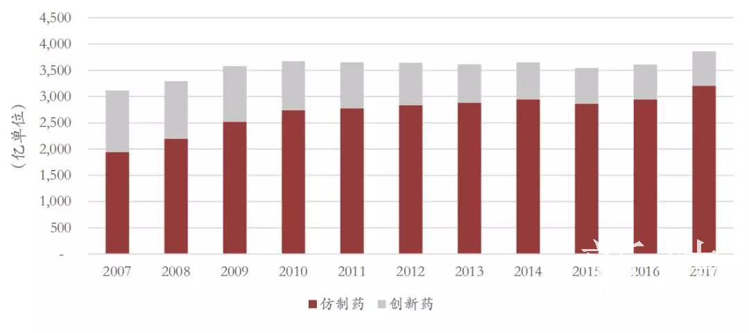 根據統計,2016年全球仿制藥市場規模達到2200億美元,2006-2016年全球各大藥品市場中,仿制藥的處方量和處方金額占比都呈現明顯提升。